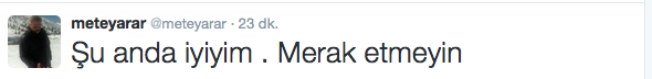 Olayın ardından Mete Yarar'dan Twitter hesabı üzerinden bir açıklama geldi. Yarar, "Şu anda iyiyim. Merak etmeyin" mesajını paylaştı.