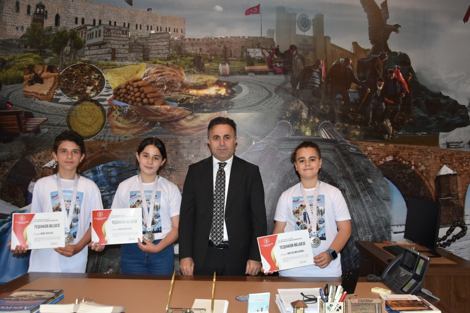 Yarışmaya katılan 180 proje arasından 2. olarak ödül almaya hak kazanan öğrenciler, proje sorumlusu öğretmenleri Emine Behiye Kütük ve Zakir Yolal ile birlikte Erzurum İl Kültür ve Turizm Müdürü Ahmet Yer’i makamında ziyaret etti.